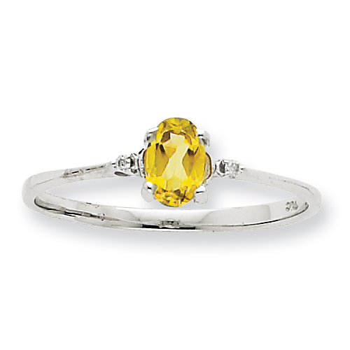 10k White Gold Polished Geniune Diamond & Peridot Birthstone Ring