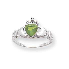 14K Gold CZ August Birthstone Claddagh Heart Ring