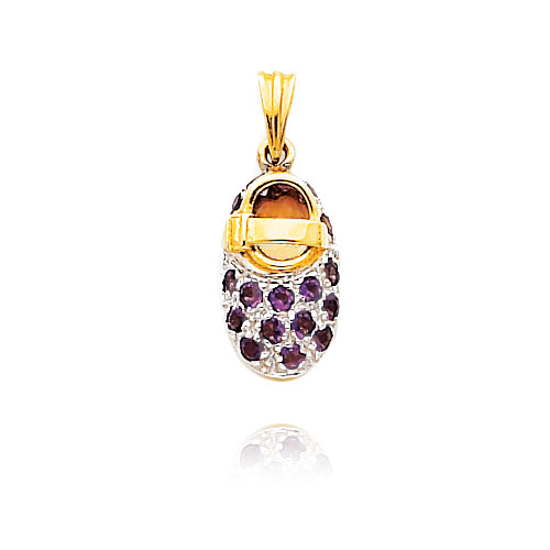 14K Yellow Gold & Rhodium February/Amethyst Baby Shoe