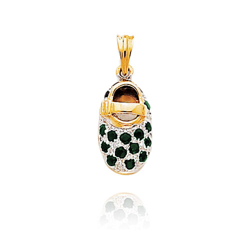 14K Yellow Gold & Rhodium August/Peridot Baby Shoe Charm