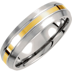 Picture of Titanium/14kt Yellow 10.50 06.00 MM POLISHED 14kt GOLD INLAY SATIN DOMED BND