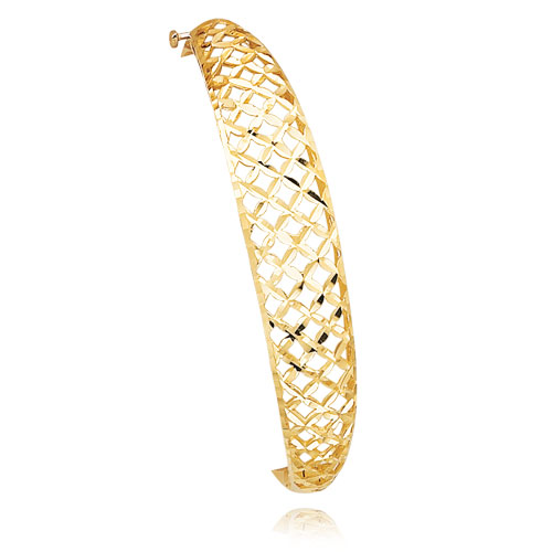 14K Gold 6.25mm-12.5mm Graduated Fancy Weave Hinged Bangle Bracelet