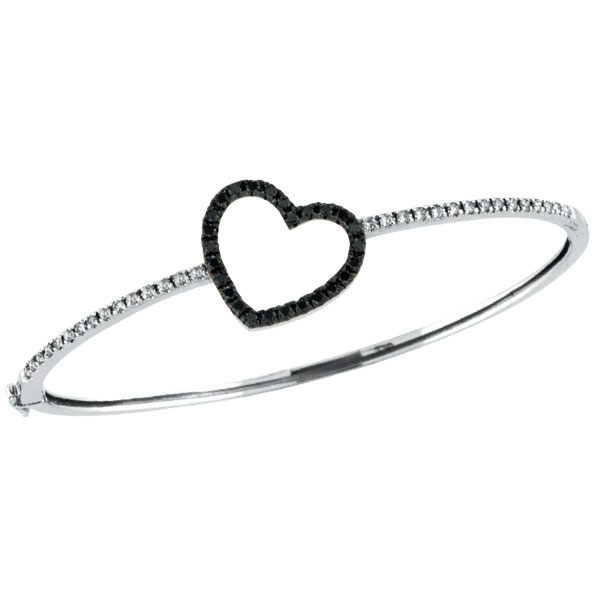 Picture of 14K White Gold Black Diamond Heart Bangle Bracelet