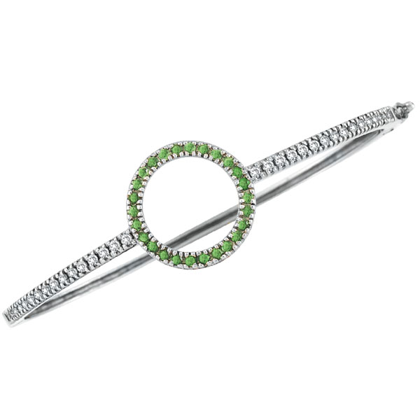 Picture of 14K White Gold Diamond & Genuine Semi-Precious Tsavorite Circle Bangle