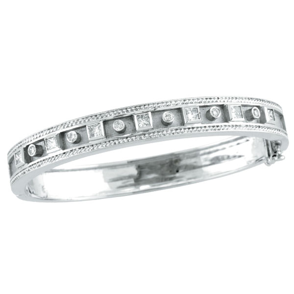 14K White Gold Princess Cut & Round Diamond Bangle BraceletWhy shop online with Ann Jewelry?