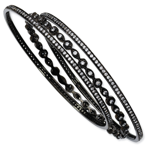 Picture of Black-plated Sterling Silver CZ Three Bangle Set