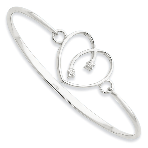 SS White Ice .06ct. Diamond Heart Bangle Bracelet