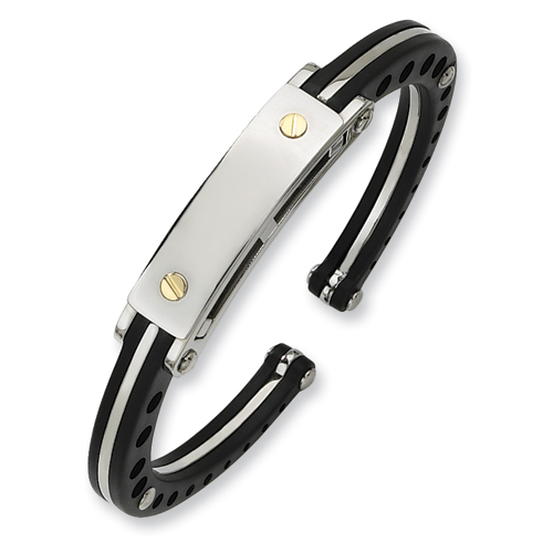 Stainless Steel Black PVC 18k Gold Accent Hinged Bangle