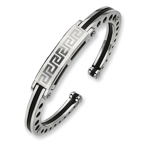 Stainless Steel Black PVC Greek Key Hinged Bangle