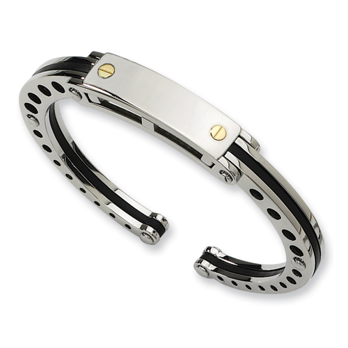 Stainless Steel Gold Accent Black PVC Hinged Bangle