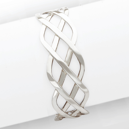 14K White Gold Princess Cut & Round Diamond Bangle Bracelet