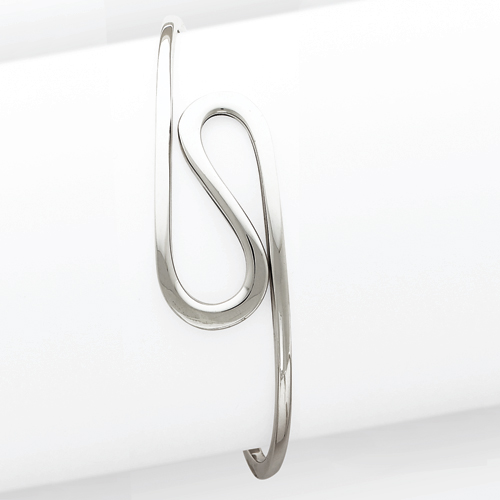 14K White Gold Antique Style Diamond & Sapphire Bangle Bracelet