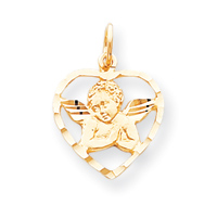 14K Yellow Gold Cross With Heart Baptismal Pin