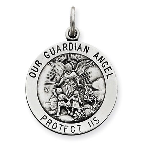 Sterling Silver Antiqued Guardian Angel Medal