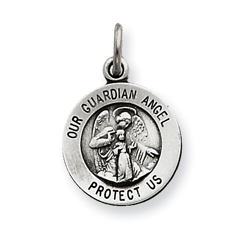Sterling Silver Antiqued Guardian Angel Medal