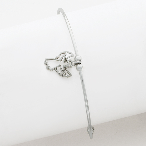 Sterlng Silver Bead w/Angel Stretch Bangle Bracelet