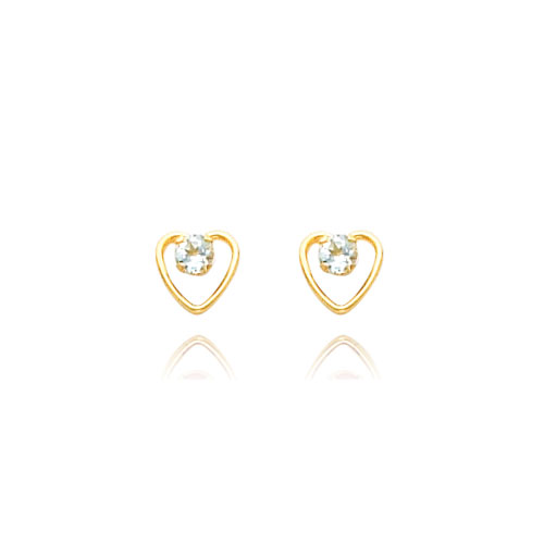 14K Gold 3mm Aquamarine Birthstone Heart Earrings