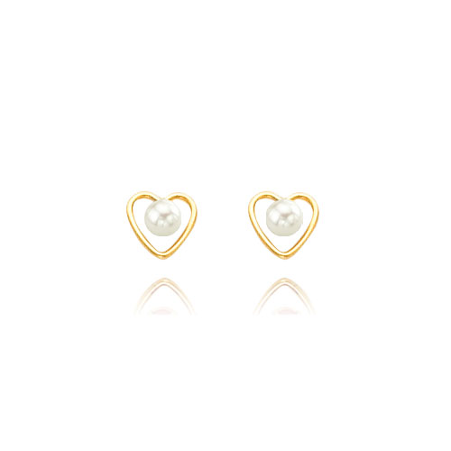 14K Gold 3mm Pearl Birthstone Heart Earrings