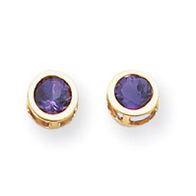 14K Gold Bezel Amethyst Stud Earrings