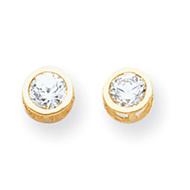 14K Gold Oval Bezel April White Zircon Leverback Earrings