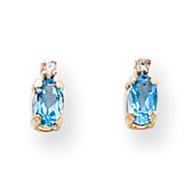 Picture of 14K Gold Diamond &  Blue Topaz Birthstone Earrings
