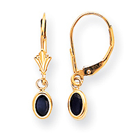 14K Oval Bezel September Sapphire Leverback Earrings