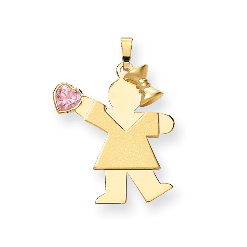 14k Girl with CZ October Birthstone Charm