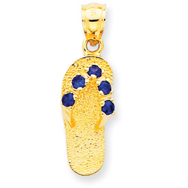 14K Gold September CZ Birthstone Flip Flop Pendant