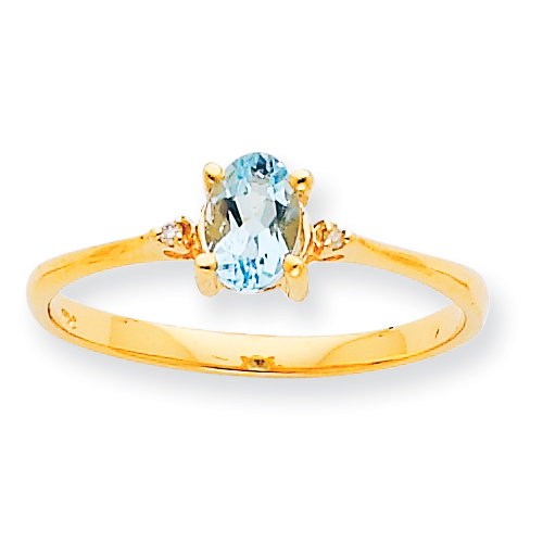 10k Polished Geniune Diamond & Aquamarine Birthstone Ring