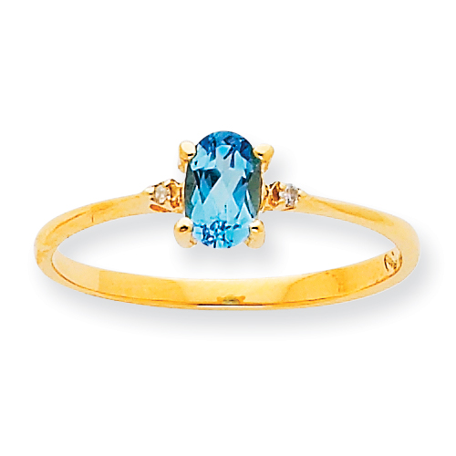 10k Polished Geniune Diamond & Blue Topaz Birthstone Ring