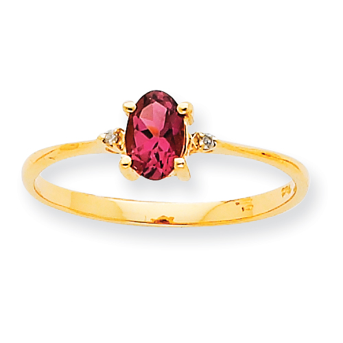 10k Polished Geniune Diamond & Pink Tourmaline Birthstone Ring