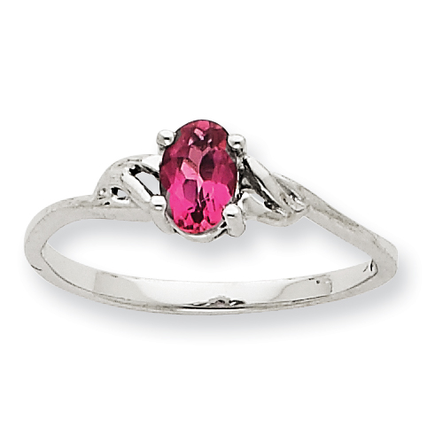 10k White Gold Polished Geniune Pink Tourmaline Birthstone Ring