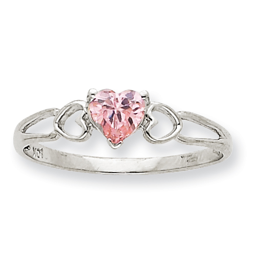 10k White Gold Polished Geniune Pink Tourmaline Birthstone Ring