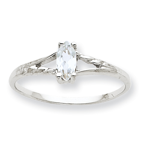 10k White Gold Polished Geniune White Topaz Birthstone Ring