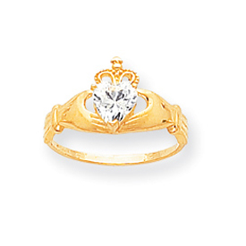14K Gold CZ April Birthstone Claddagh Heart Ring