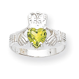 Picture of 14K White Gold August Birthstone Claddagh Ring