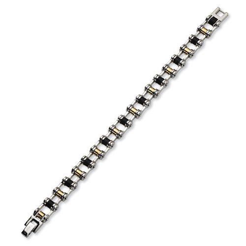 Stainless Steel 24K Plated and Black Rubber Bracelet