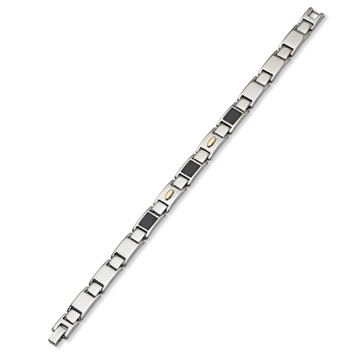 Stainless Steel Carbon Fiber 24k Gold Plated Bracelet