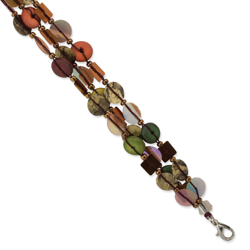Silver-tone Green/Red/Brown Hamba Wood & Sequin 7.25" Bracelet
