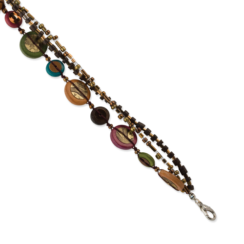 Silver-tone Hamba Wood, Coconut, Acrylic Bead & Sequin 7.5" Bracelet