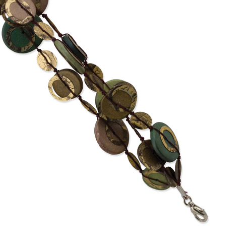 Silver-tone Multicolored Hamba Wood & Sequin 7.5" Bracelet
