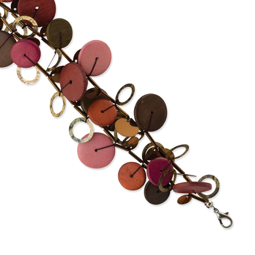 Silver-tone Multicolored Hamba Wood & Sequin 7.5" Bracelet