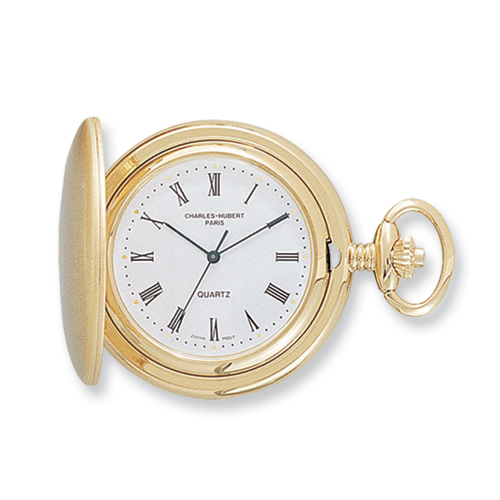 Charles Hubert 14k Gold-plated White Dial Black Pocket Watch
