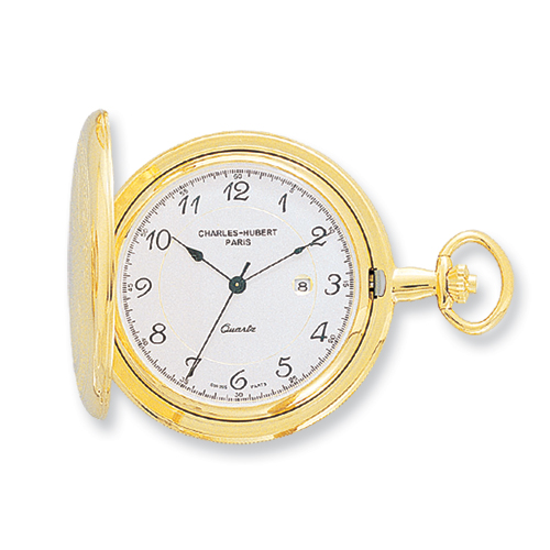 Charles Hubert 14k Gold-plated White Dial with Date Pocket Watch