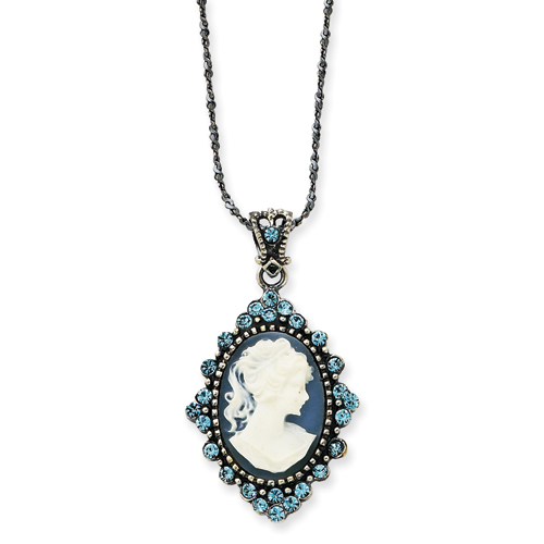 Sterling Silver Blue Crystal Cameo Pendant w/ 16 Chain