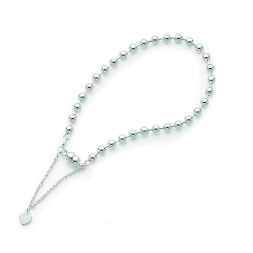 Sterling Silver Beaded Dangling Heart Magnetic Clasp Bracelet