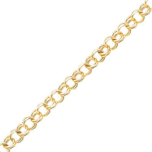 Beautifully display any collection of charms with this double link bracelet! 10K Gold is formed into gorgeous bracelet of interlocking rings. Gold finish is polished, as bracelet features lobster claw clasp.