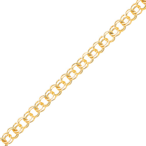 The beautiful beginnings of any charm bracelet! 10K Gold is formed into gorgeous bracelet of double, interlocking rings. Gold finish is polished as bracelet features lobster claw clasp.
