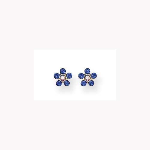 14K Blue & Aurora Borealis Crystal Flower Earrings