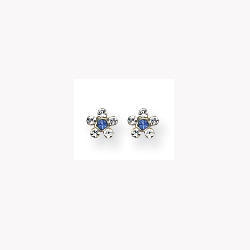 14K Clear & Blue Crystal Flower Earrings